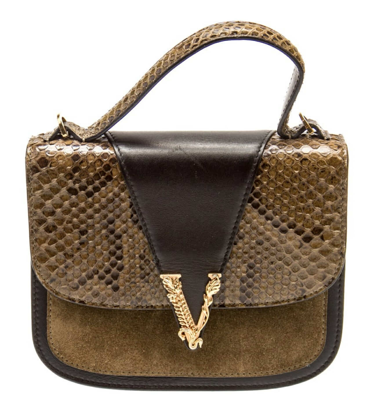VERSACE Leather Animal Print Top Handle Bag